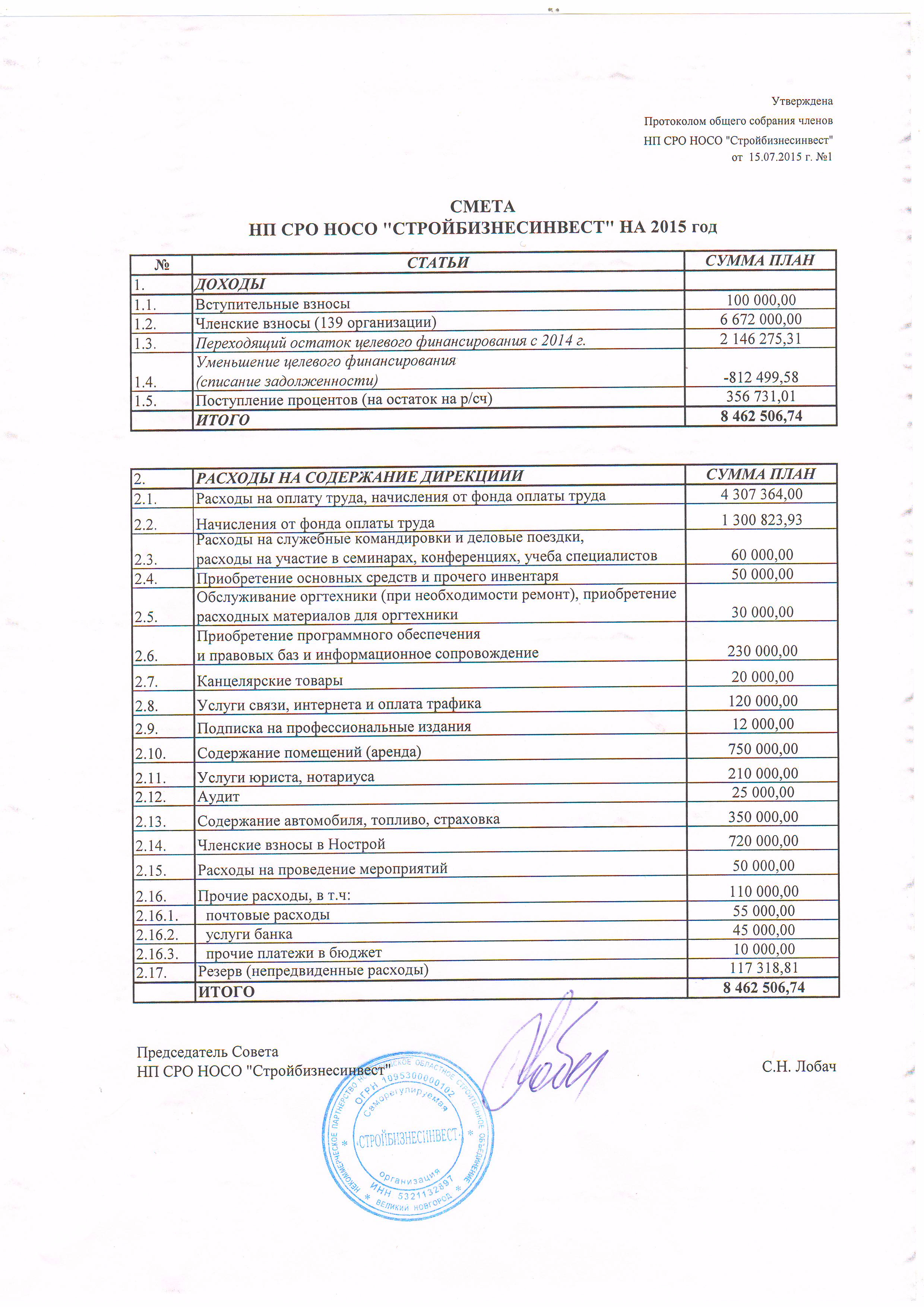 Смета на 2015 год