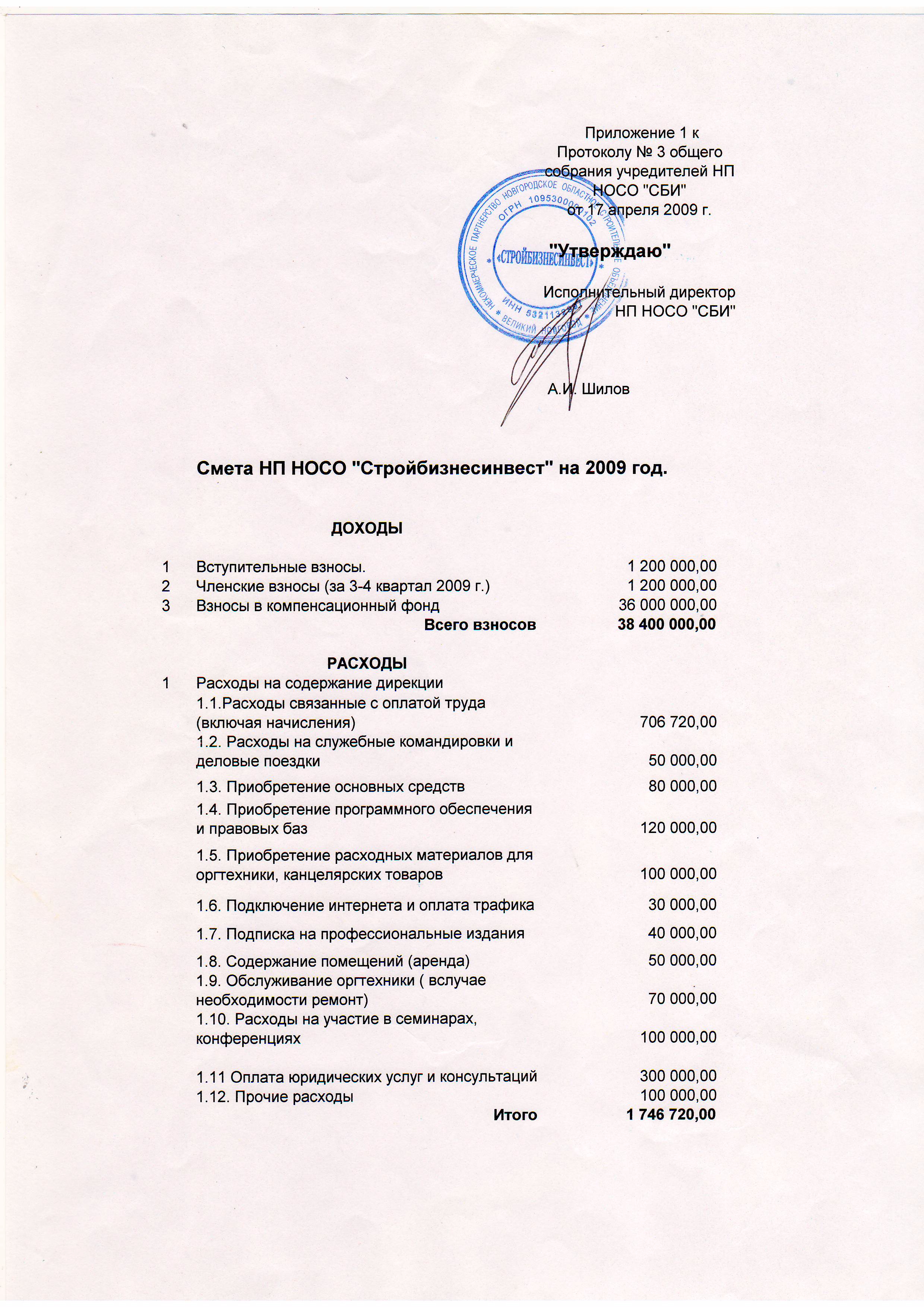 Смета на 2009 год