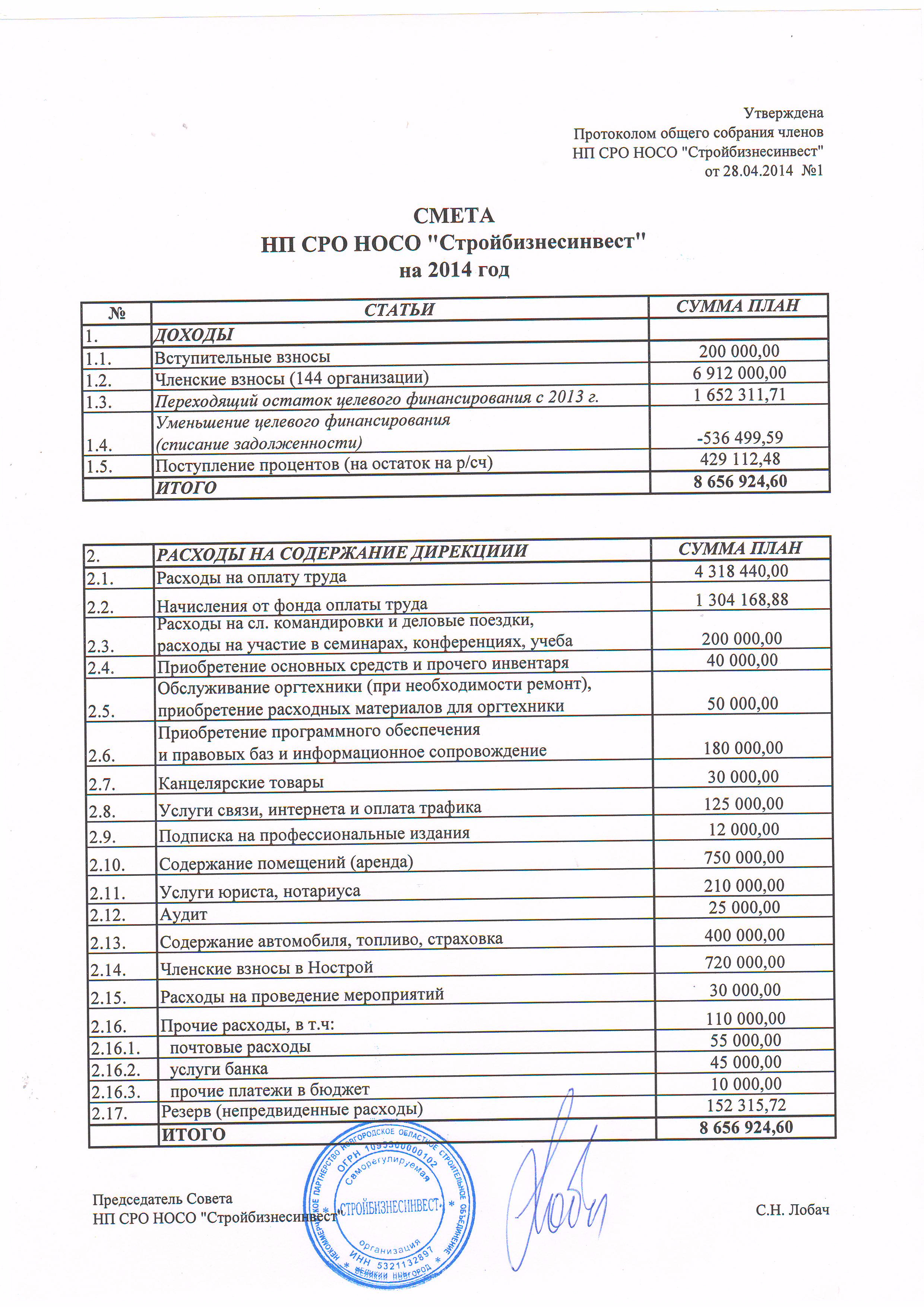 Смета на 2014 год